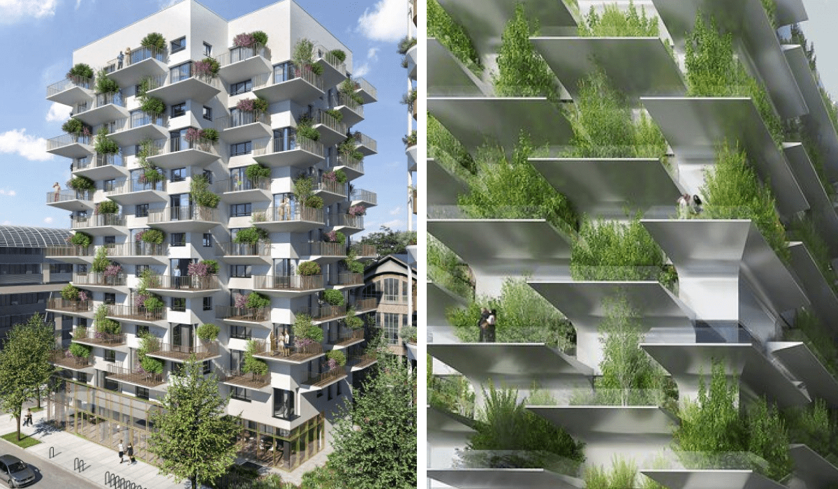 Situé en plein cœur de Paris face aux quais de la Seine, le projet Alguésens, développé par Marignan,, intègre la nature en milieu urbain. Ce complexe résidentiel, s'étendant sur plus de 15 000 m², dont 13 000 m² de logements, 1 200 m² de tiers-lieu, ainsi que 2 000 m² de jardins et potagers, illustre l'innovation en urbanisme écologique.