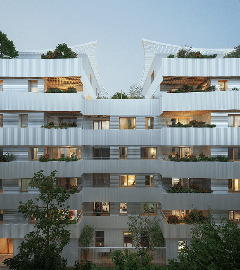 Adoptant une approche intégrant matériaux écologiques et méthodes constructives hybrides, le projet Auréa, conçu par Nicolas Laisné, associe bases en béton robuste et étages supérieurs en bois CLT. Cette combinaison privilégie une esthétique équilibrée tout en optimisant la performance environnementale. La disposition des bâtiments, ponctuée de failles intermédiaires, favorise la lumière naturelle et la ventilation, tout en offrant des espaces extérieurs privés, tels que loggias et terrasses. En attique, une pergola métallique à lames bois enrichit les usages et apporte une finition architecturale raffinée.