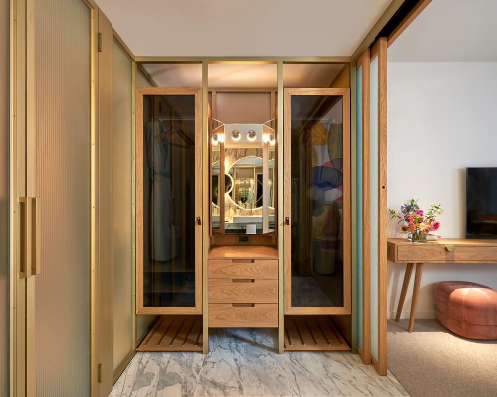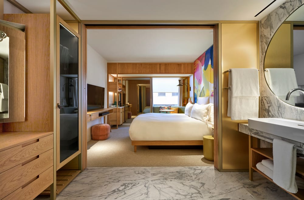 Dans les chambres et suites, l’agencement fluide, les matériaux nobles (laiton, marbre, chêne) et les têtes de lit tissées sur mesure dessinent un luxe discret, à la fois fonctionnel et expressif. Chaque détail célèbre l’artisanat, la nature et l’esprit floral de Marylebone.