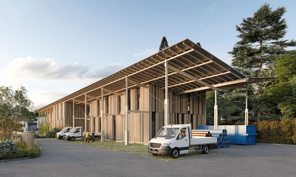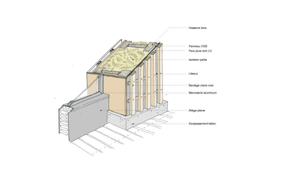 Maîtrise d'ouvrage : Syndicat Interdépartemental Mixte des Eaux et de l’Assainissement du Guiers et de l’Ainan (SIEGA) — Architecte : Coco Architecture (mandataire) — Programme : Construction neuve d’un bâtiment regroupant des services administratifs, techniques et prospectifs en lien avec l’eau, comprenant un lieu d’information pour le public, des ateliers techniques, une salle de réunions et des bureaux — Adresse : Pont-de-Beauvoisin (38480) — Surface : 1 216 m² — Coût : 3,2 M€ HT — Mission : Concours lauréat – Base loi MOP + SIGN — Calendrier : 2023-2026 — Maîtrise d'œuvre : BOST, MAYA, Atelier Tombolo, LoVRD, GBA&co, Echologos — Matériaux : Biosourcés, mur en pisé, isolation paille, ossature bois — Crédits Perspectives : ©CoCo architecture