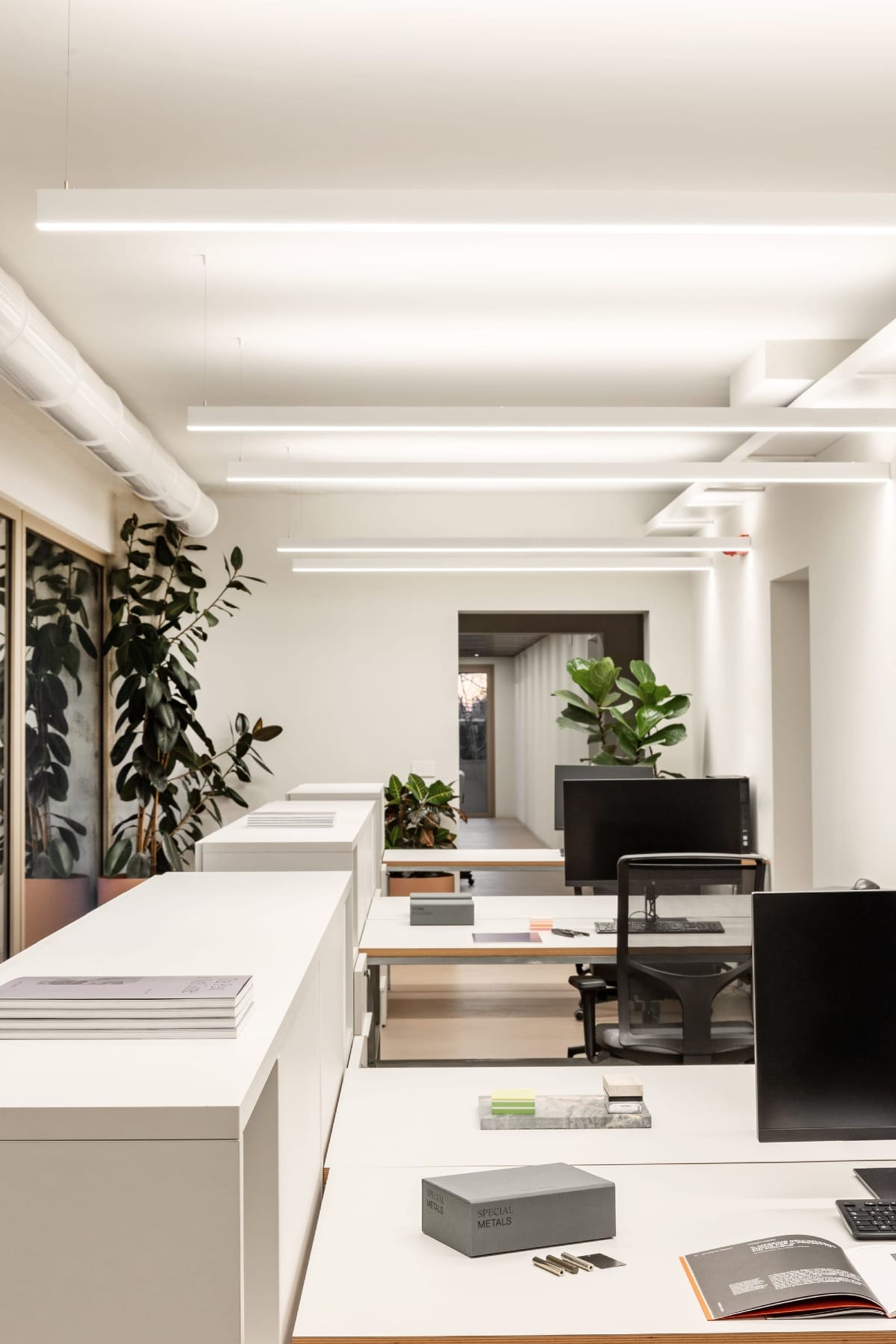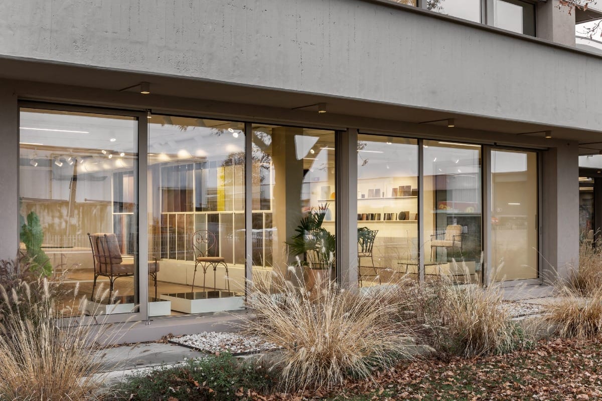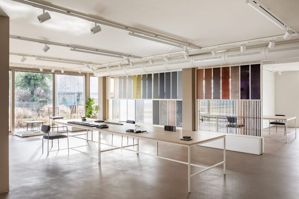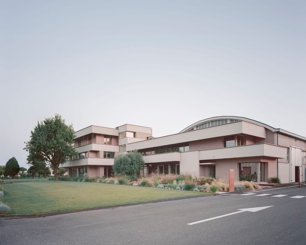 À Villorba, dans une zone industrielle au nord de Trévise, STUDIO BRESSAN transforme un ancien site de production en un siège contemporain pour Dante Negro, maison spécialisée en ferronnerie de design. Le projet conserve l’ossature béton des années 1970, en valorisant son caractère brut et monolithique. La circulation d’origine est préservée : les flux industriels traversent le bâtiment d’est en ouest, de l’arrivée des matériaux à la sortie des pièces finies.