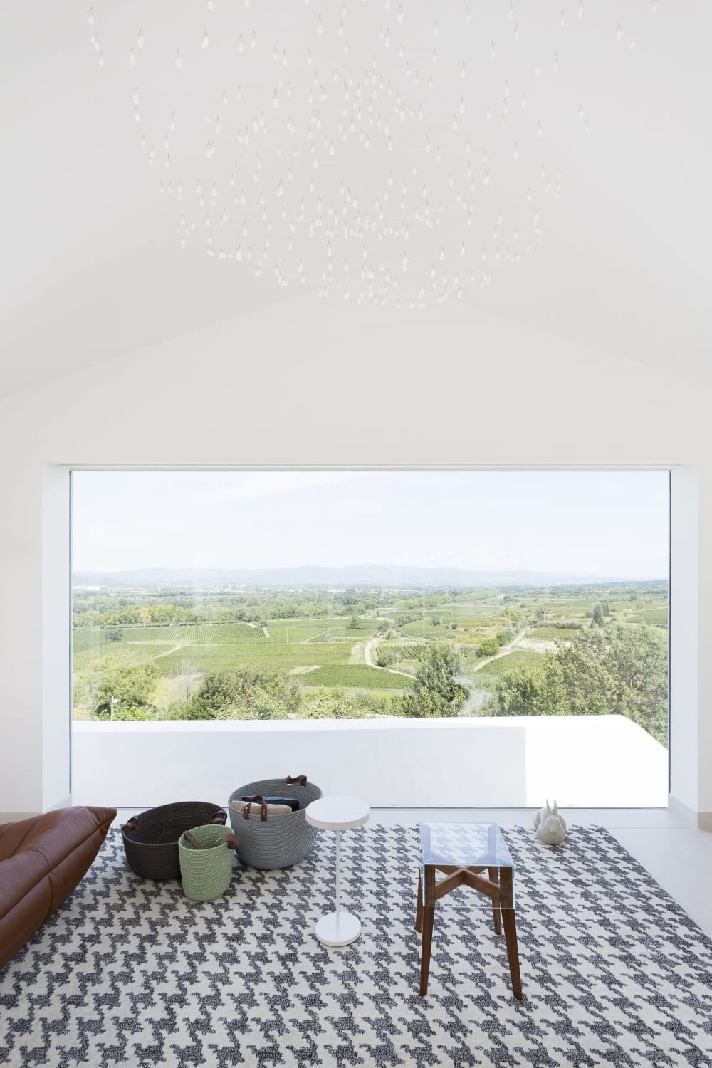 Villa Tranquille, conçue par Artelabo, s’insère dans une parcelle contrainte entre remise viticole, parking et voie d’accès, avec une orientation nord peu favorable. Pour répondre à cette configuration, elle adopte une structure introvertie et modulaire, fondée sur une grille rationnelle de volumes à toitures deux pentes. L’alternance régulière entre espaces construits et patios forme un dispositif compact, tourné vers un unique panorama, tout en garantissant un ensoleillement optimal via ses cours intérieures.