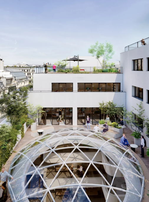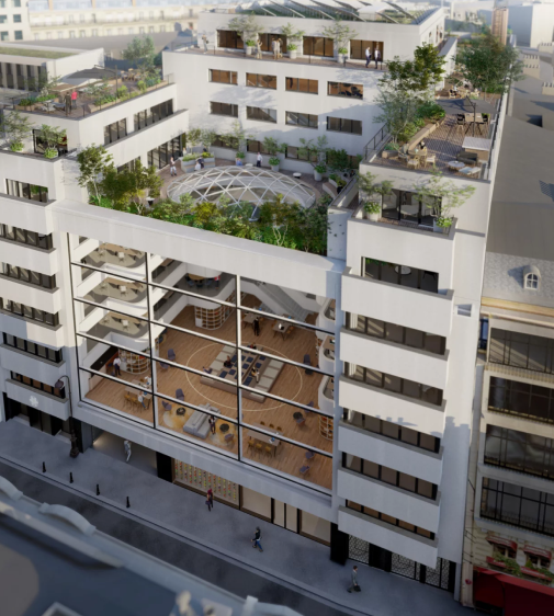 Dans le Triangle d’Or parisien, le projet Icône, porté par l'agence PCA-STREAM, consiste en la réhabilitation d’un ancien garage Citroën des années 1930 en un immeuble de bureaux contemporain. Cette intervention conserve l’empreinte architecturale d’origine tout en répondant aux standards actuels en matière de fonctionnalité et de confort. La façade historique est soigneusement restaurée, tandis que l'intérieur est entièrement repensé pour offrir des espaces de travail flexibles, lumineux et ouverts sur un atrium central baigné de lumière naturelle.