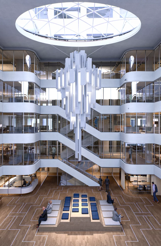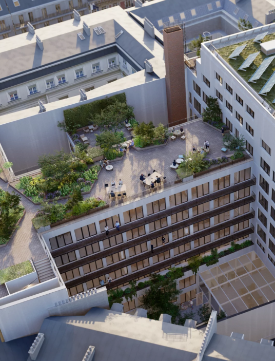L’organisation spatiale privilégie la modularité des plateaux afin de s’adapter aux nouvelles pratiques professionnelles, avec des zones de travail reconfigurables et des espaces de collaboration intégrés. Le projet intègre également un jardin suspendu, créant un lien entre nature et architecture au cœur du bâtiment. Cette transformation valorise le patrimoine existant tout en offrant un environnement de travail stimulant et durable, ancré dans les dynamiques urbaines contemporaines.