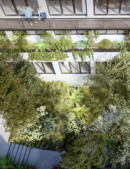 Maîtrise d'ouvrage : GECINA — Architecte : PCA-STREAM — Programme : Réhabilitation d'un immeuble tertiaire en bureaux, meeting hub et commerces — Adresse : 32-34 rue Marbeuf, Paris (75008) — Surface : 13 700 m² — Statut : En cours — Entreprise : Petit — Paysagiste : Mugo — Économiste : AE75 — Bureau de contrôle : BTP Consultants — CSPS : BTP Consultants — Conseil SSI : Casso & Associés — BET fluides : Atys — BET structures : Eckersley O’Callaghan — BET façades : Eckersley O’Callaghan — BIM manager : CBC — BET environnement : Artelia — BET acoustique : Meta — Géomètre : Legrand — Agriculture urbaine et biofiltration : Sous les Fraises — Crédits Perspectives : ©PCA-STREAM