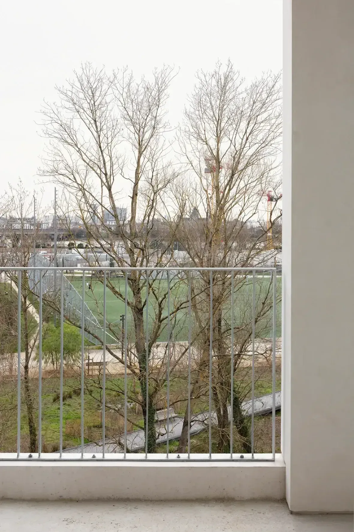 Les logements, tous traversants, sont prolongés par des espaces extérieurs généreux et ombragés, garantissant confort thermique et qualité de l’air. L’ensemble est certifié NF Habitat HQE 9*, et intègre un cœur d’îlot végétalisé favorisant la biodiversité. Les bâtiments sur pilotis laissent le sol perméable et accessible à la faune.