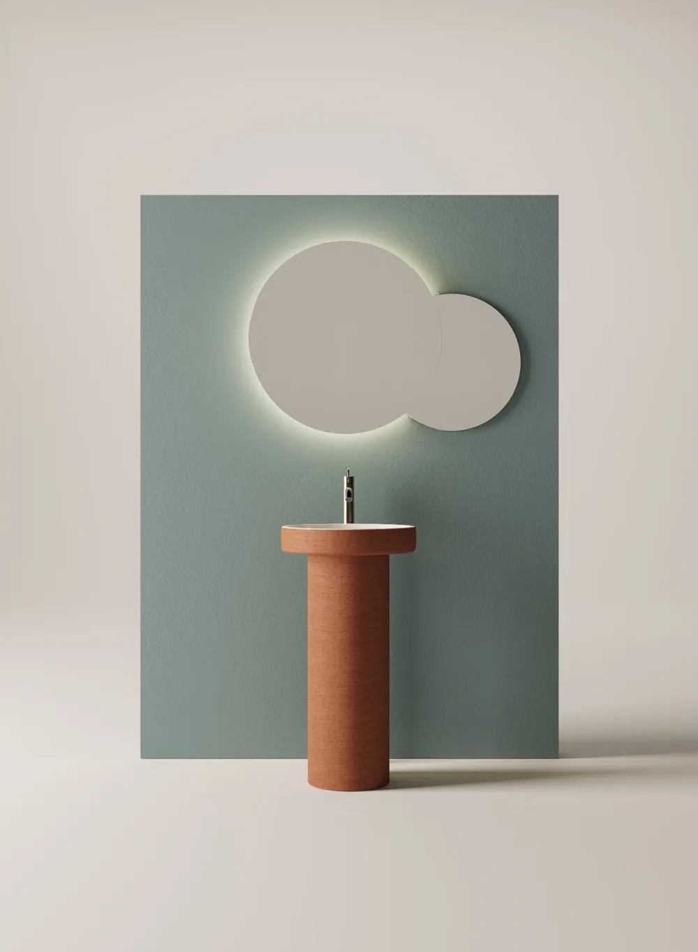 Ce modèle sur colonne donne une liberté d’implantation inédite dans la salle de bain, affirmant une présence sculpturale au centre de l’espace. Disponible en deux finitions – terre naturelle ou terre foncée – Cenote a Colonna incarne une approche à la fois architecturale et artisanale, loin des codes décoratifs usuels. Chaque pièce est unique, rythmée par les irrégularités du façonnage, et traduit un équilibre précis entre esthétisme, matière et fonction.