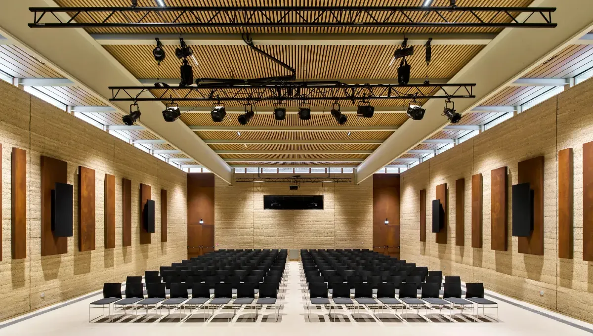Maîtrise d’ouvrage : Ville de Châteaufort — Architecte : Leo Berellini Architecte — Programme : Construction d’une salle polyvalente — Adresse : Domaine d’Ors, Châteaufort (78) — Année : NC — Architectes associés : Antonio Belvedere (phase concours) + Roger Elbaz architecte (Economie et DET)— Crédits photos : Michel Denancé