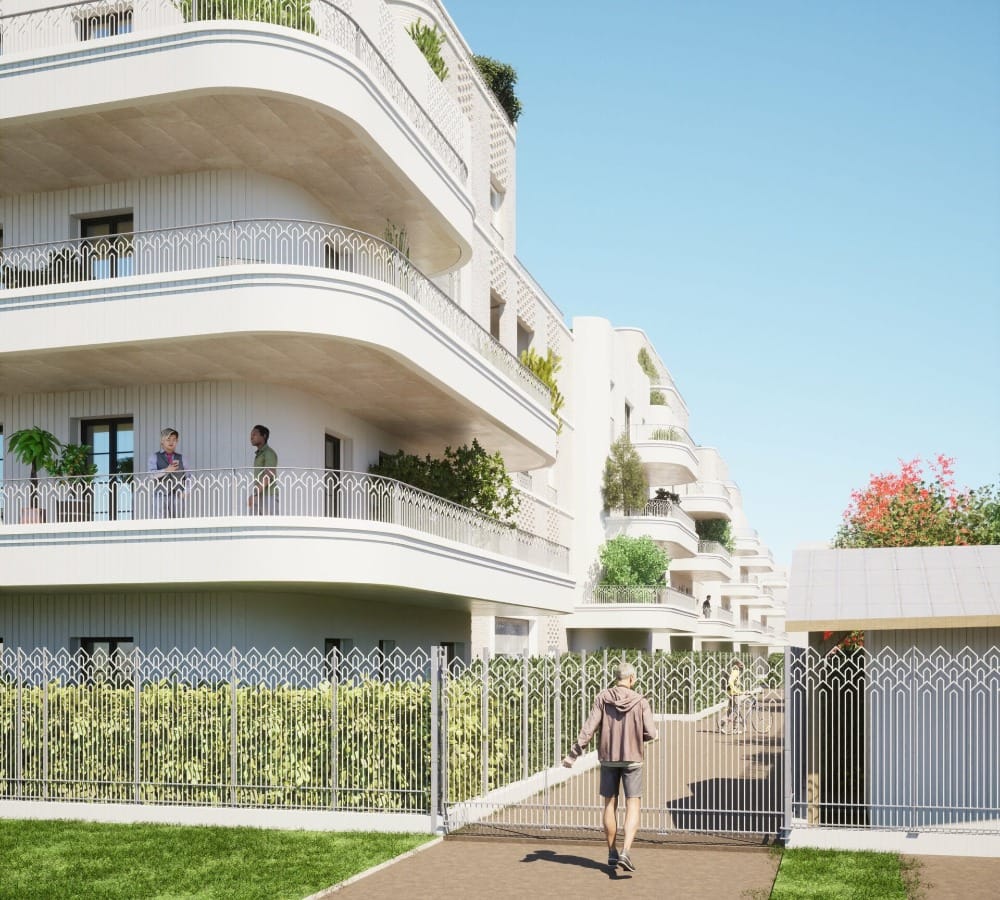 L'architecture, contemporaine et épurée, privilégie des lignes sobres et des matériaux durables, assurant une identité forte tout en respectant le tissu urbain existant. Les espaces extérieurs — loggias, balcons, terrasses et jardins privatifs — prolongent les espaces de vie et renforcent le lien avec l’environnement.