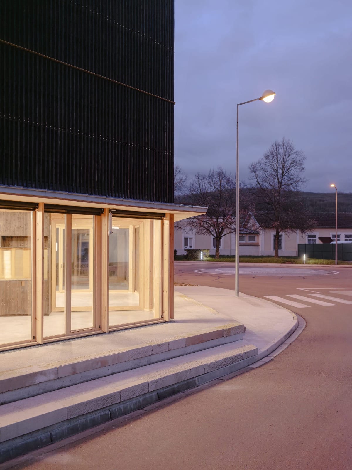 Ce bâtiment compact et sculptural affirme une présence contemporaine forte, entre innovation, durabilité et ouverture sur la ville.