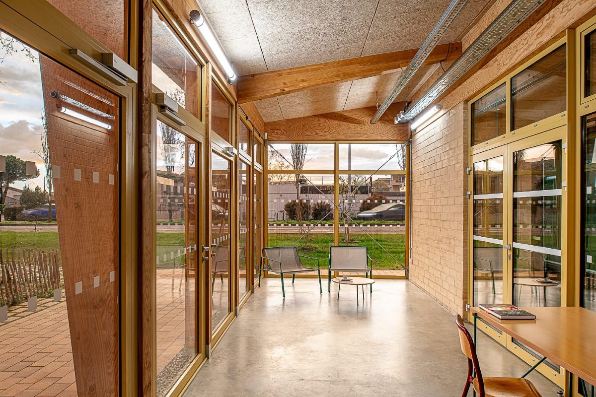 Autour du bâtiment, un jardin pédagogique prolonge les valeurs du projet : verger, potager, dispositifs de phyto-épurassions, compost, zones de permaculture. L’ensemble offre un terrain d’expérimentation et d’appropriation pour les habitants. Plus qu’un équipement, la MTE fonctionne comme une plateforme civique dédiée aux initiatives locales, ancrée dans une matérialité accessible et un urbanisme de proximité. Une architecture discrète, évolutive, pensée comme levier de transformation concrète.