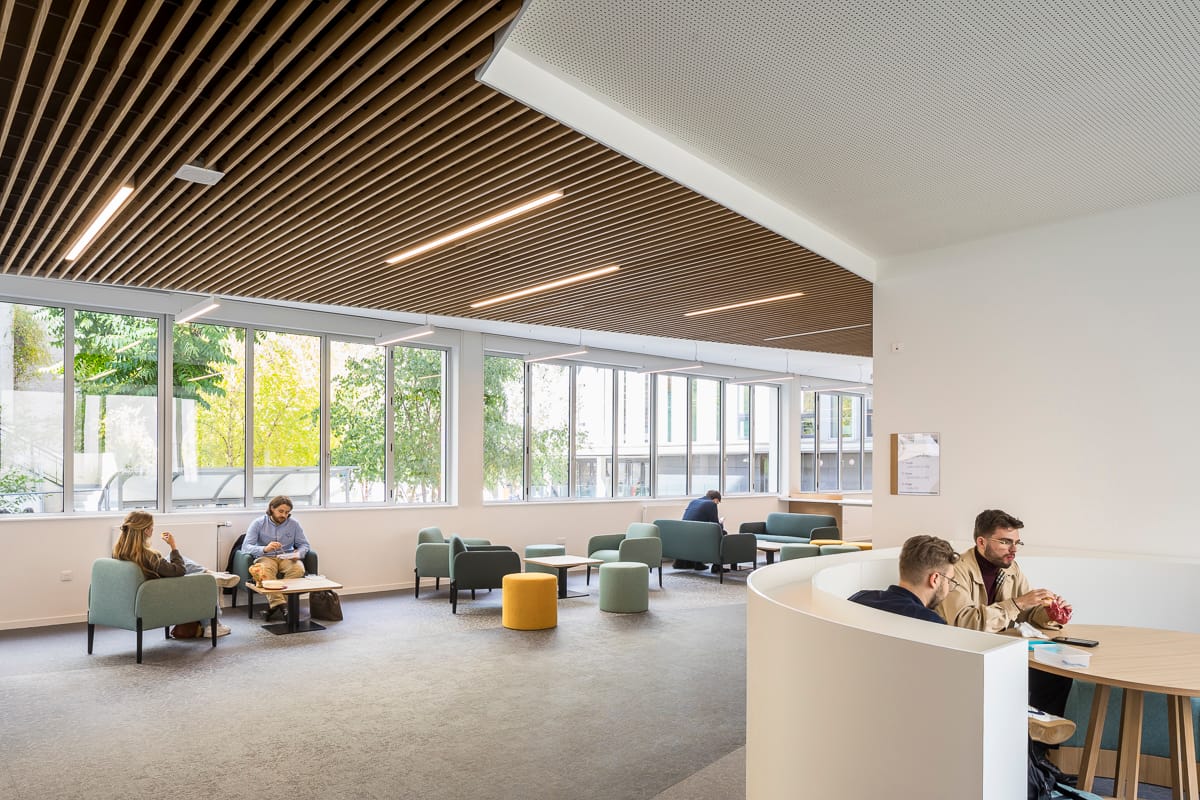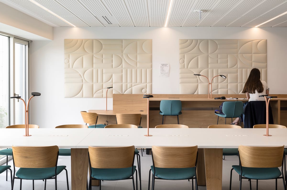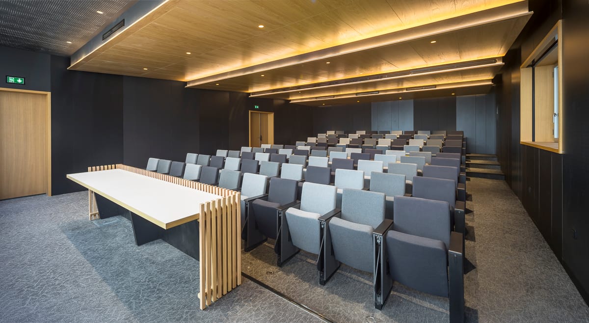 La rénovation inclut également la transformation de l'ancien parking souterrain en locaux nobles, utilisés pour des fonctions académiques et de recherche. Ces changements sont conçus pour intégrer harmonieusement des fonctionnalités modernes tout en respectant l'empreinte originale du bâtiment. Le projet se distingue par sa fonction, mais aussi par ses performances écologiques améliorées. L'amélioration thermique de l'enveloppe du bâtiment est réalisée par le remplacement des menuiseries, ce qui contribue à réduire la consommation énergétique globale.