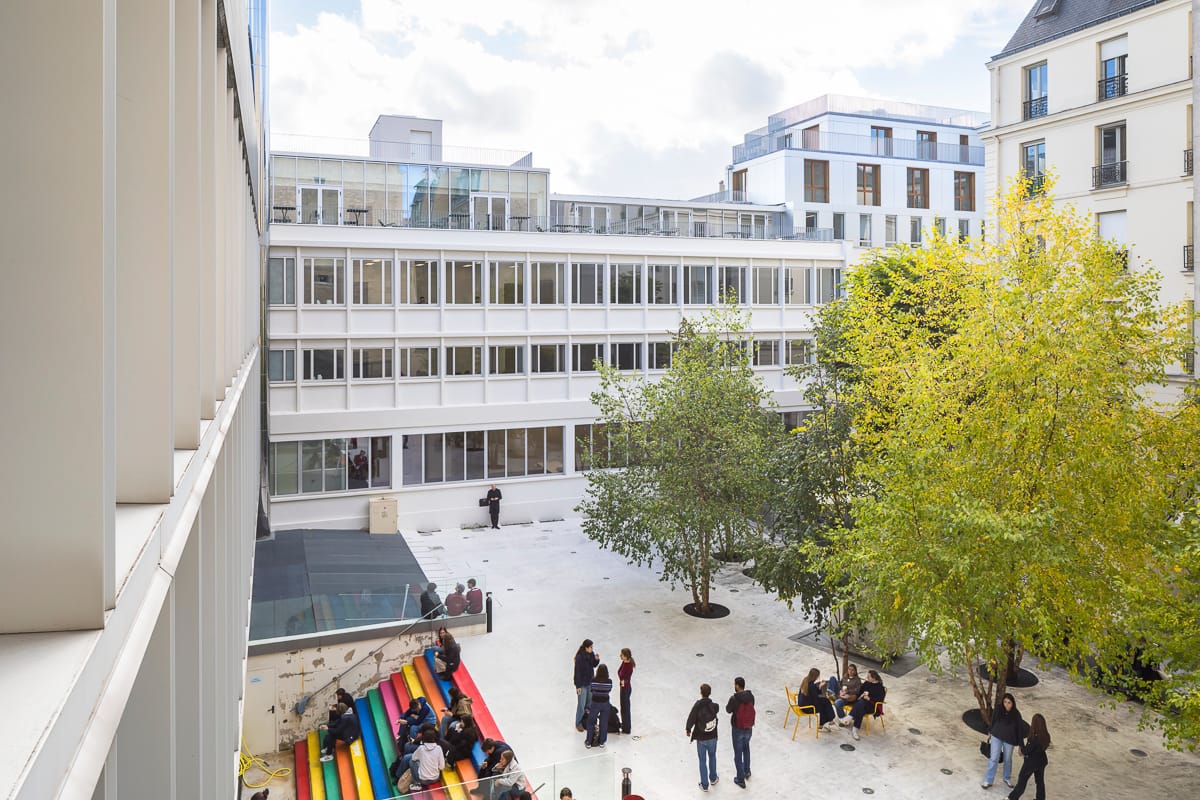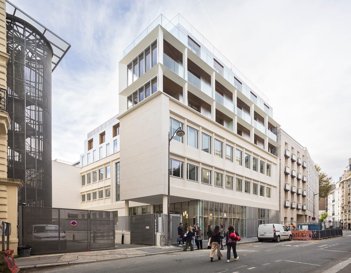 Maîtrise d'ouvrage : Demathieu Bard Immobilier — Architecte : B+A Architectes — Programme : Logements + Locaux d’enseignement — Adresse : Paris (75006) — Mission : Complète + SSI + agencement mobilier (enseignement) + décoration d'intérieur (logements) — Surface : 3 800 m² — Montant des travaux : 12,30 M€ HT — État : Livraison 2024 — AMO : AI Environnement, META Atelier Acoustique — Partenaires : BE TCE et économiste SAS Mizrahi, Atelier Alice Tricon — Crédits Photos : Sergio Grazia