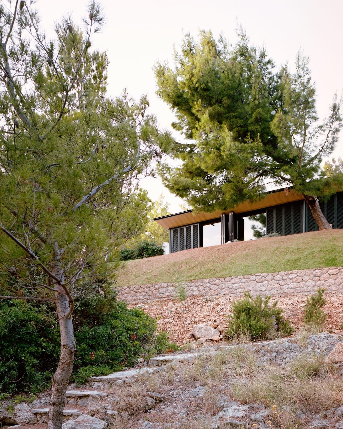 Enfouie dans la végétation du maquis méditerranéen, la maison d’hôtes "SEA HOUSE" conçue par STUDIO BRESSAN s’intègre avec une discrétion absolue. En retrait du terrain principal, elle s’installe en contrebas de la pente, presque effacée dans le relief. Le projet privilégie l’ancrage au sol et la relation au paysage : aucune ostentation, seulement une présence maîtrisée qui laisse toute la place à la vue sur la mer.