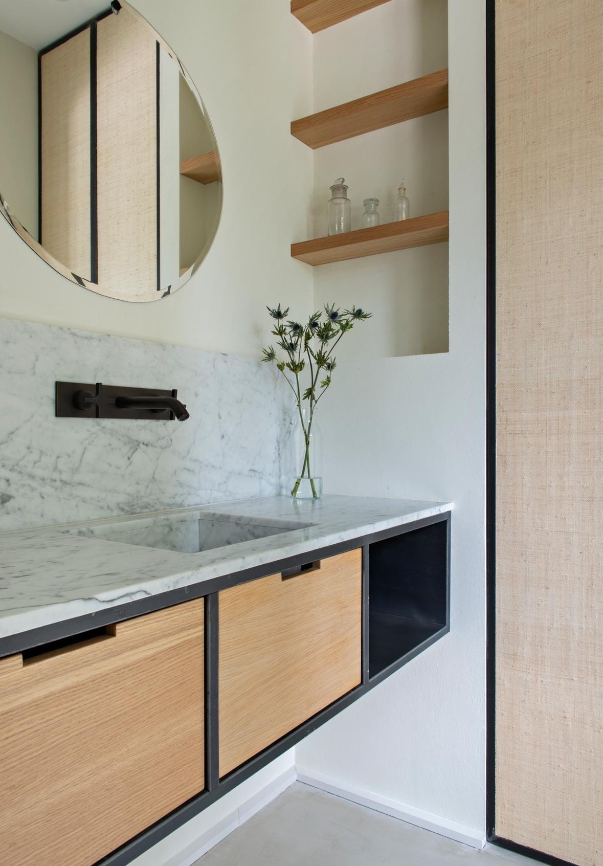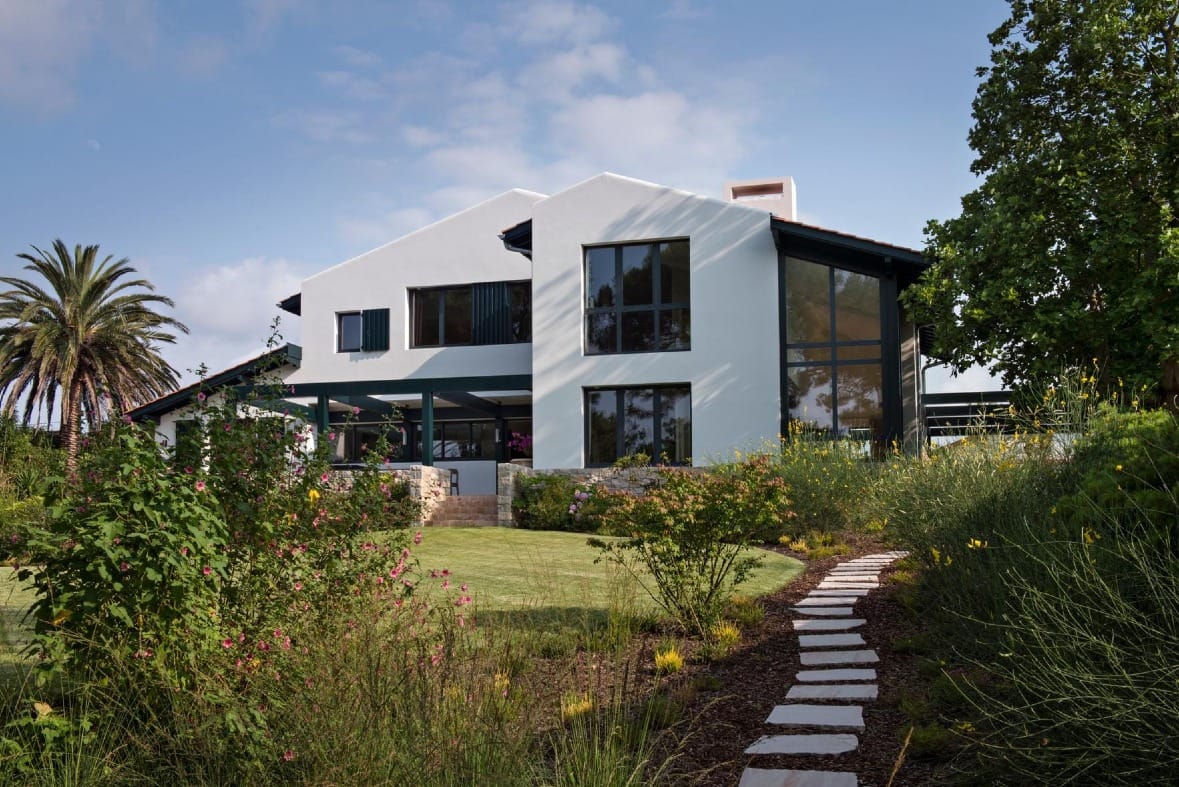 Située entre forêt de pins et Atlantique, cette résidence secondaire conçue par l’Atelier Delphine Carrère à Bidart réinterprète les codes vernaculaires de la maison basque dans une version contemporaine maîtrisée. Sur une parcelle paysagée, la construction en maçonnerie blanche s’organise autour de volumes simples, soulignés par une toiture à deux pans, des colombages noirs et un mur pignon en pierre de Bidache, autant de références à l’identité locale.