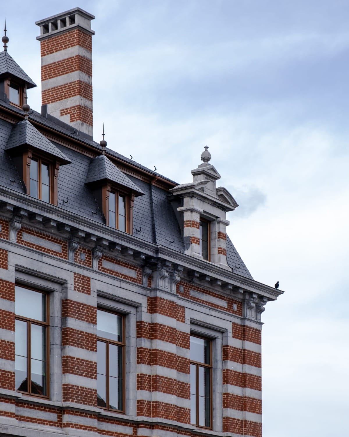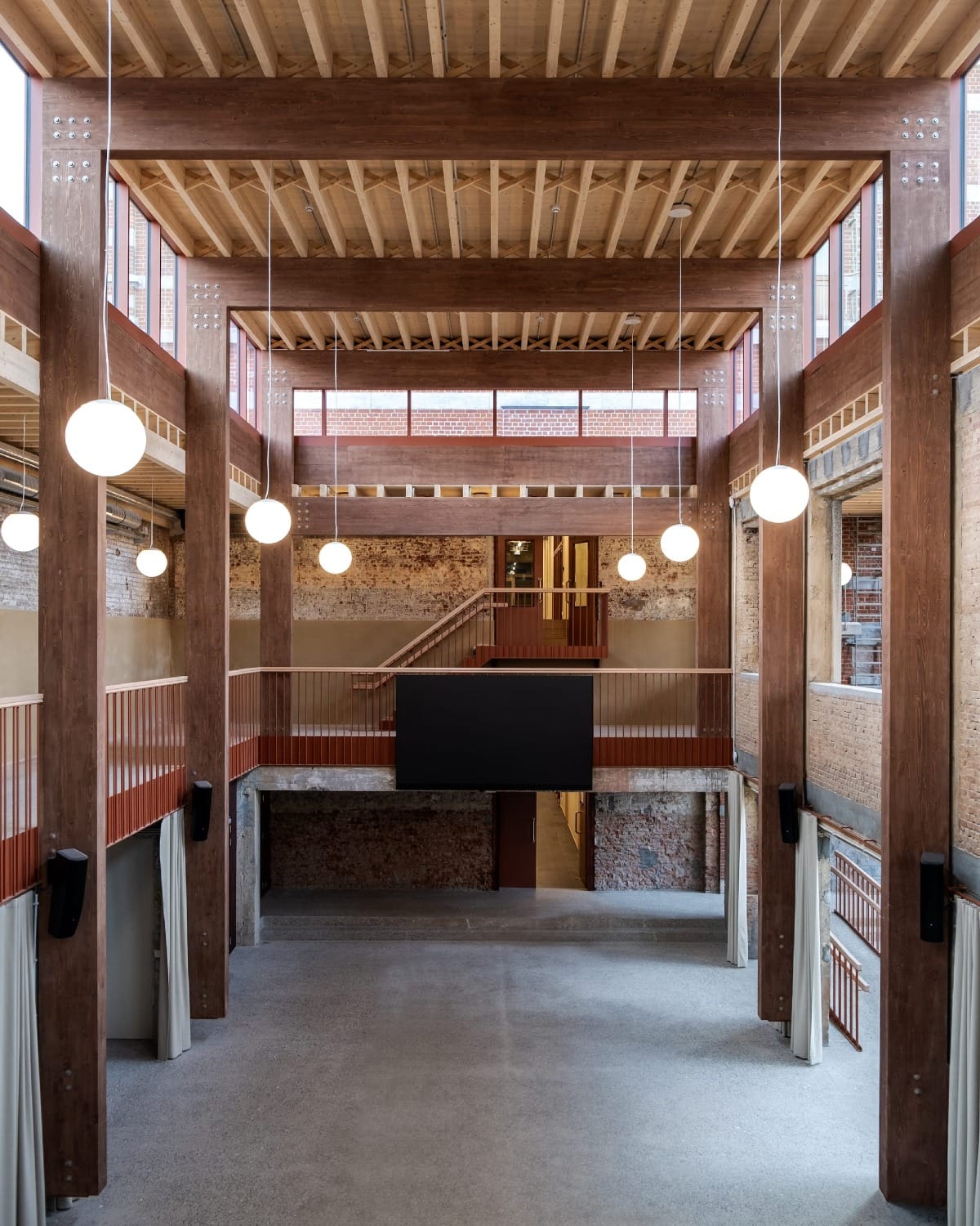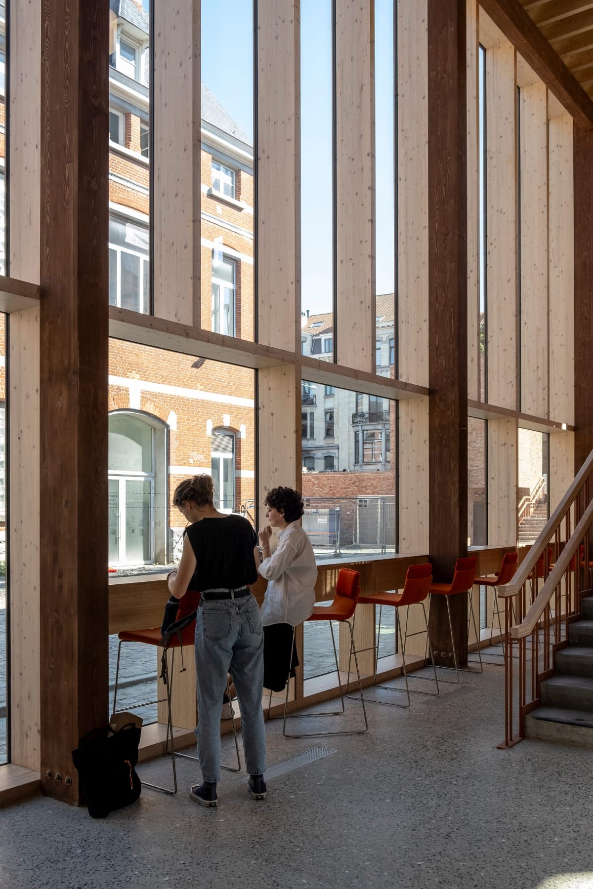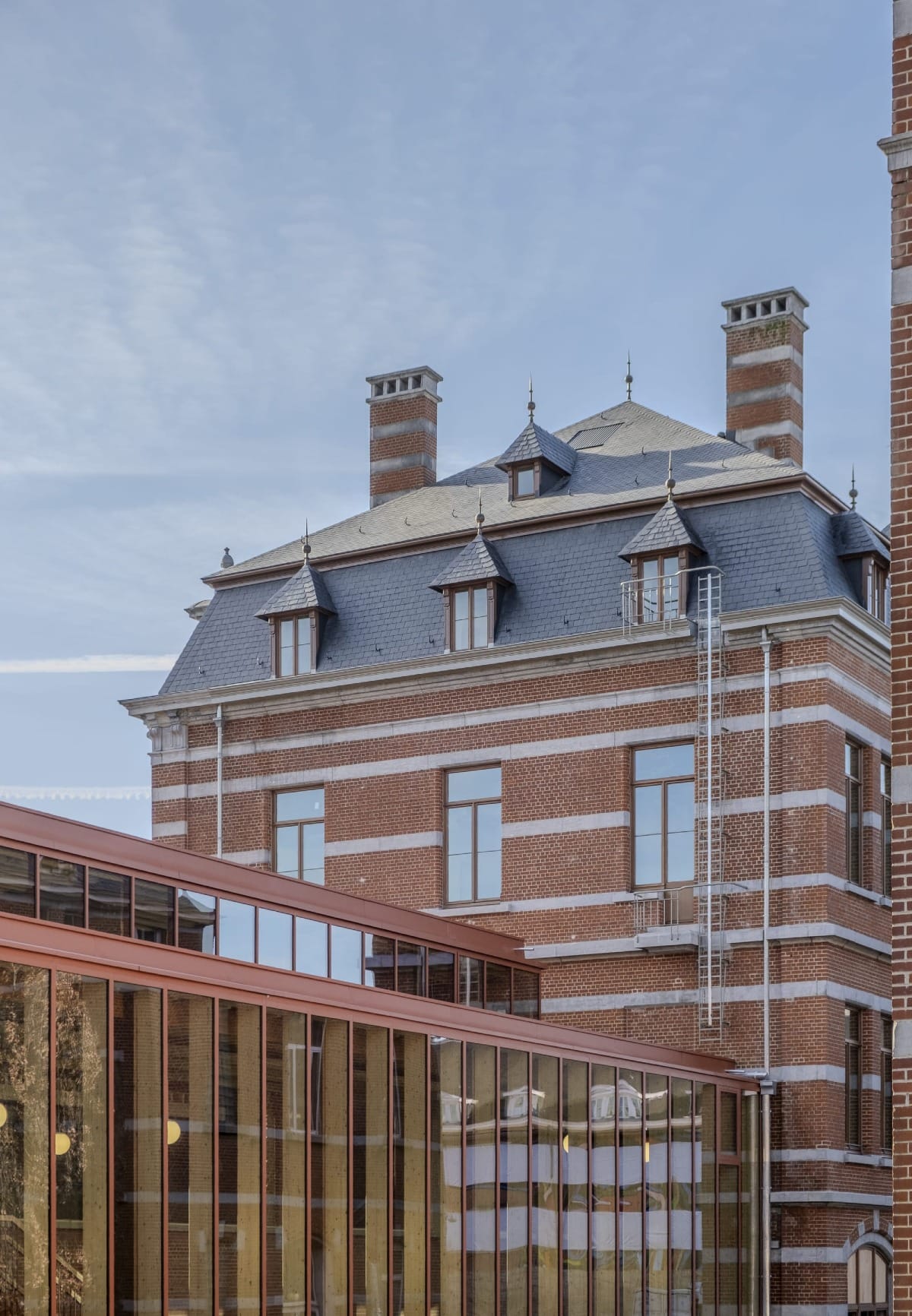 Maîtrise d’ouvrage : VUB, ULB, SAU / MSI — Architecte : evr-architecten + BC architects & studies — Programme : rénovation et réaffectation de 7 bâtiments sur le site de l'Ancienne Caserne à Ixelles — Surface : 9 035 m² — Adresse : Ixelles (Belgique) — Budget : 16 700 000 € HT — Année : 2024 — Restauration : Callebaut architecten — Crédits photos : Farah Fervel - BC architects&studies