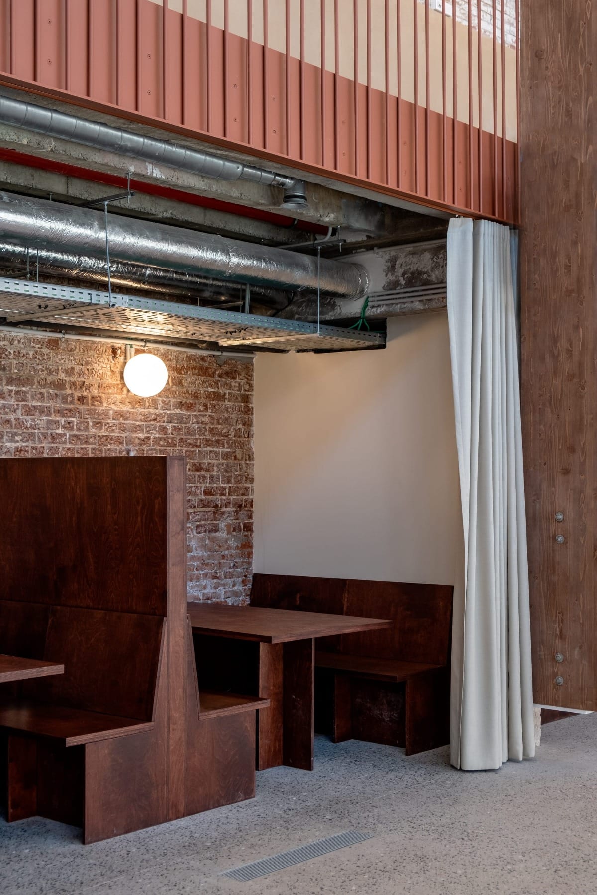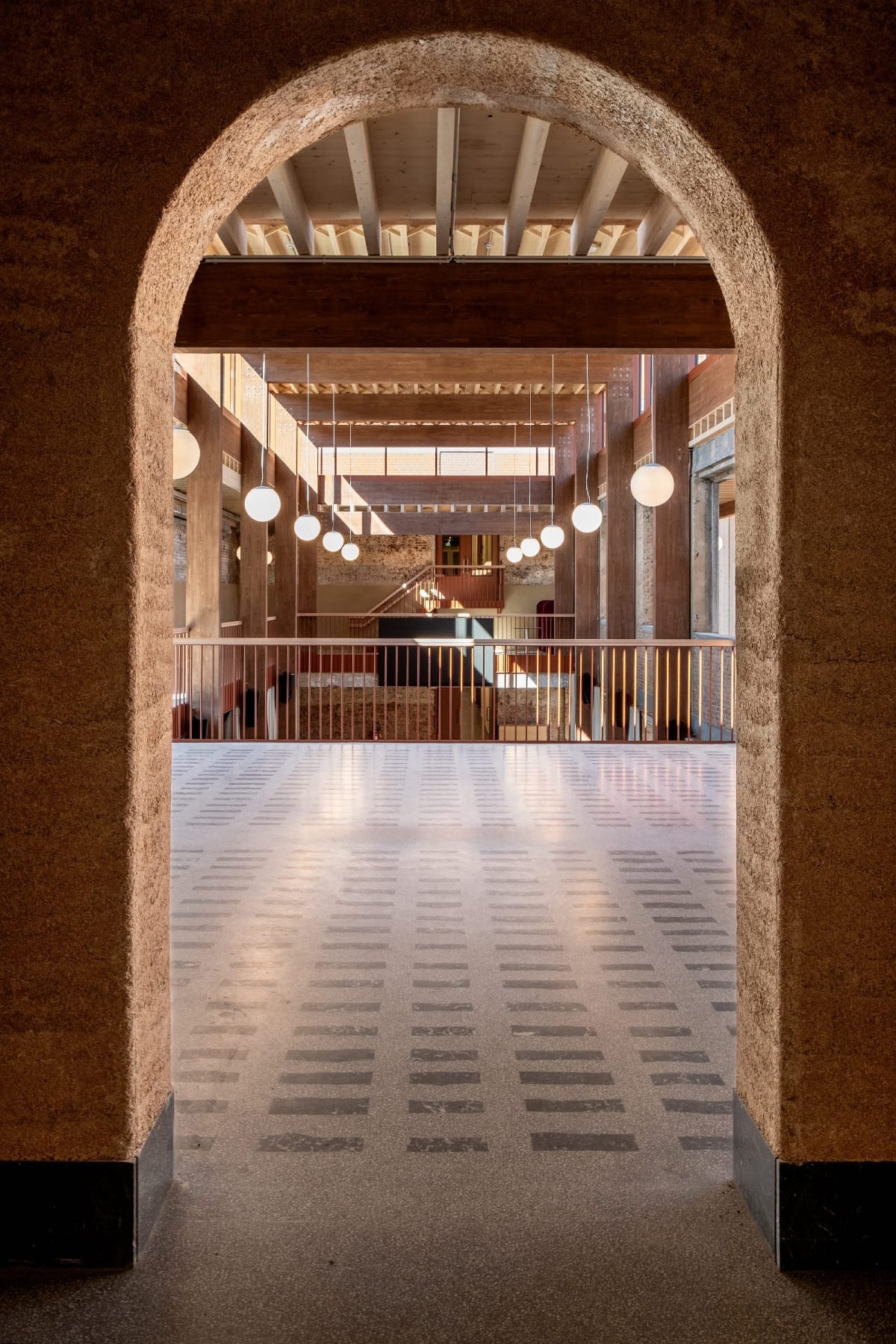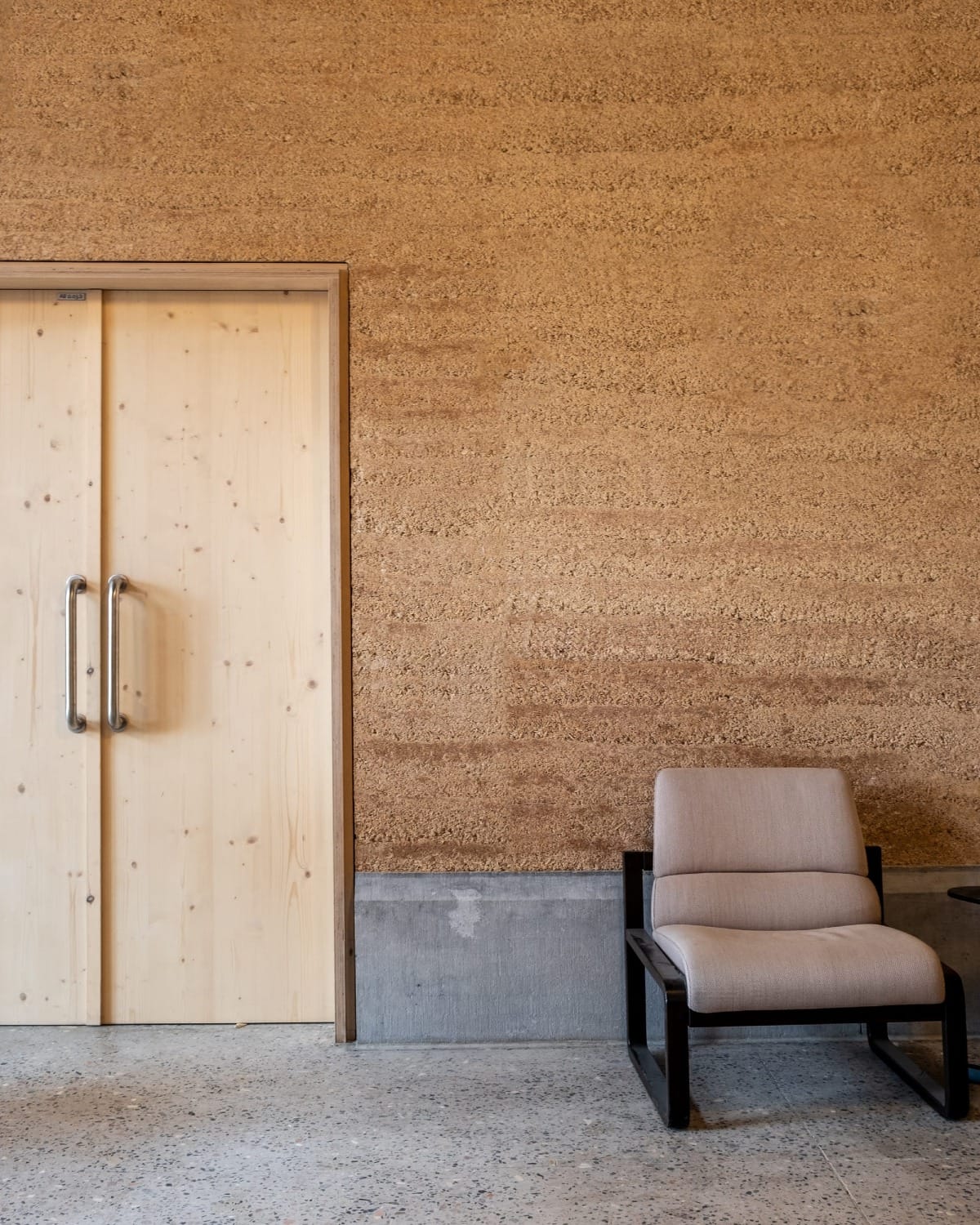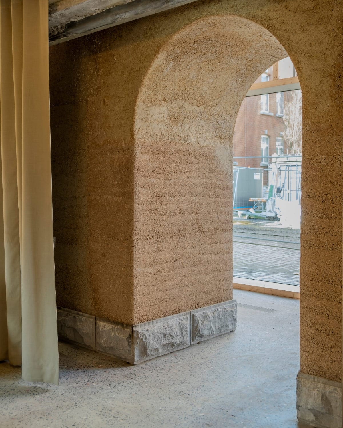 Ici, la ville devient carrière. Les matériaux issus de la déconstruction des bâtiments voisins sont réintégrés dans le cycle constructif : briques réemployées, vitrages remis en œuvre, sols recomposés à partir de matières recyclées. Tout est pensé pour minimiser les déchets et maximiser l’intelligence du réemploi. L’approche est aussi bio-sourcée : enduits d’argile acoustiques, béton de chanvre, bois et isolants naturels structurent les intérieurs.