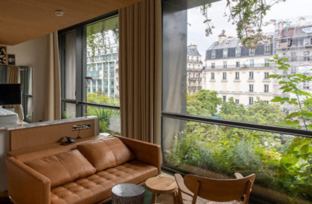 67 chambres et 6 suites baignées de lumière composent l’hôtel géré par Paris Society. Bois brut, tissus naturels, mobilier sur mesure : chaque espace propose une expérience tactile et apaisée. Depuis la Suite Pasteur, les deux terrasses végétalisées offrent une vue panoramique sur la Tour Eiffel. L’hospitalité y devient paysage.